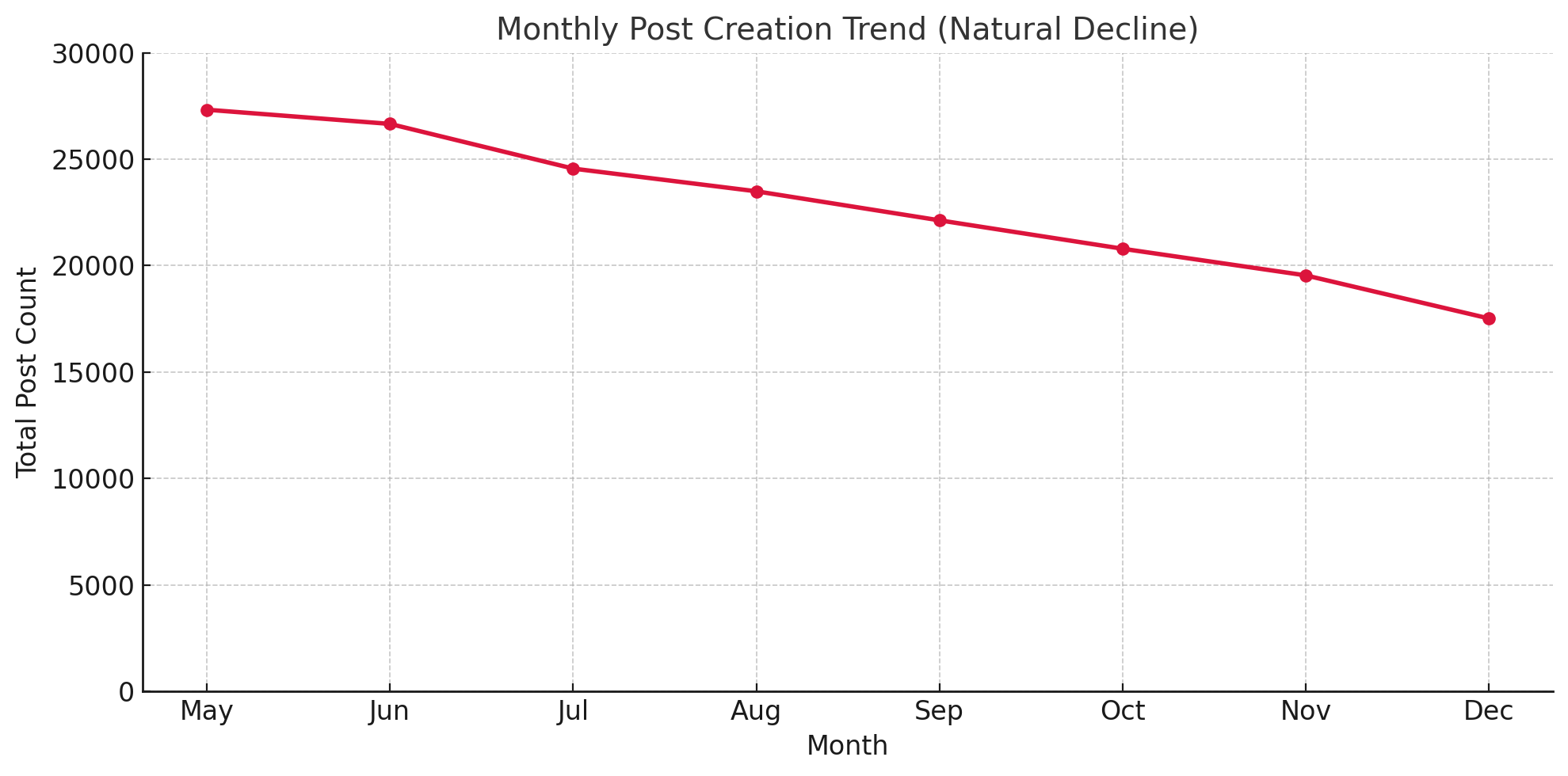 Time Series Trend Analysis : Post creation was continuously tracked via Amplitude as a time-series trend. While funnels and retention metrics gave us insight into drop-off and engagement, the month-over-month behavior chart helped highlight a broader systemic decline in content activity